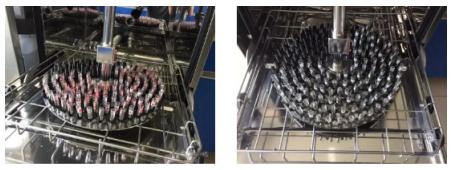 ③實(shí)驗(yàn)室洗瓶機(jī)干燥時(shí)熱空氣通過(guò)頂部、底部噴淋臂的噴嘴以及清洗柱的噴嘴進(jìn)行干燥,保證快速干燥玻璃器皿內(nèi)部、外部。