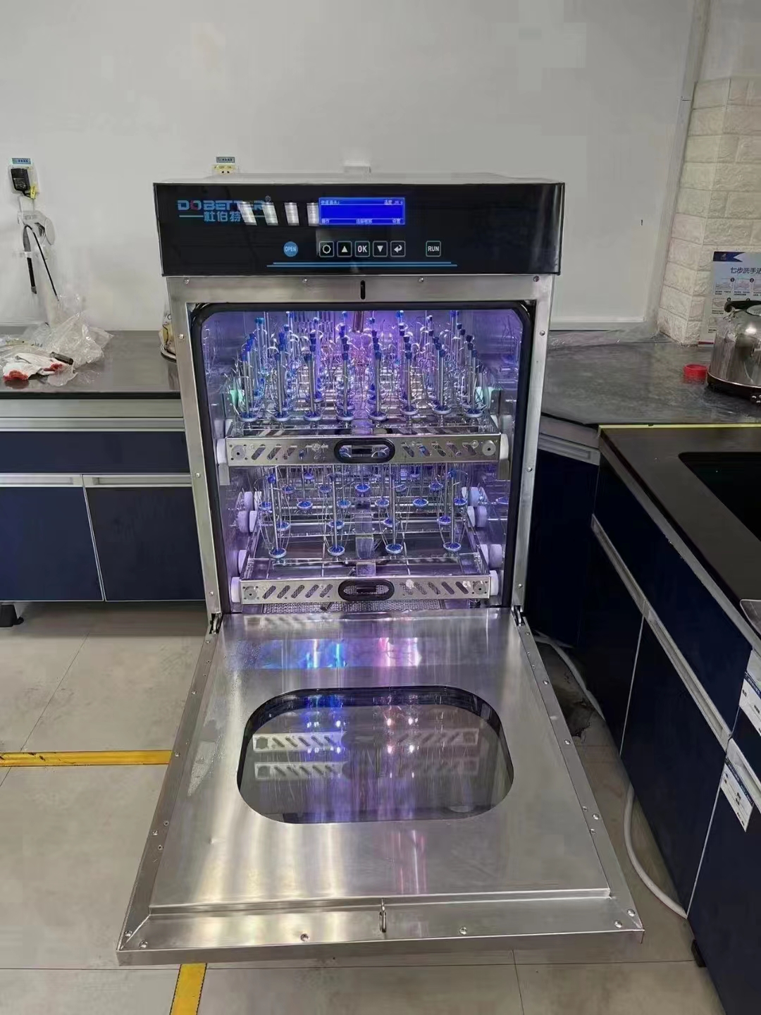 1.解放雙手,人機分離作業;杜伯特核磁管清洗機操作只需三步,將核磁管放入對應的清洗籃架上;選擇清洗模式;按清洗鍵開始清洗。