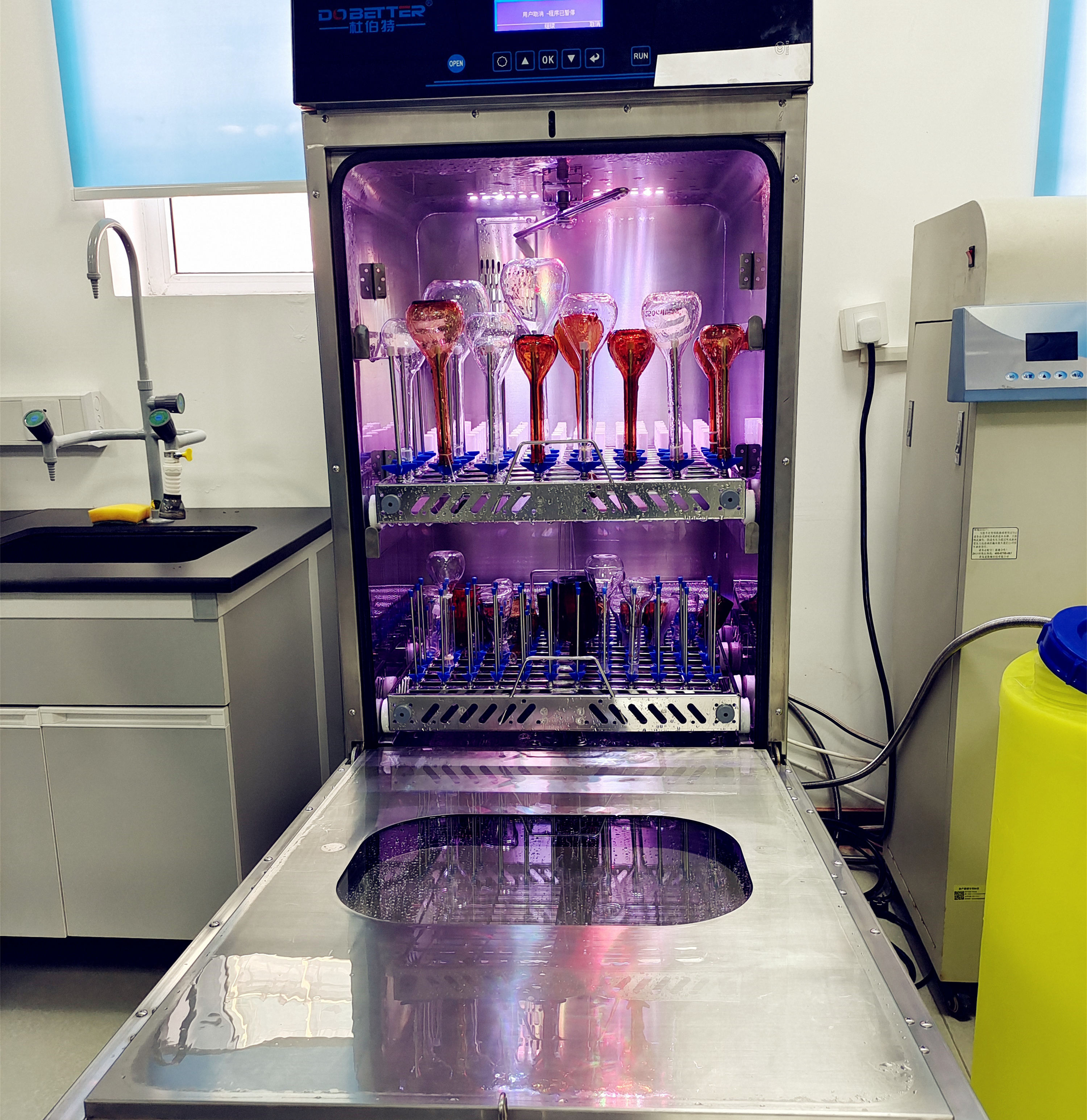 針對不同形狀的玻璃器皿,需要采用不同的清洗籃架,選擇合適的噴淋方式、噴淋壓力、噴淋角度和距離。不僅如此,針對不同行業的應用,需要設置不同的清洗程序。其中包括不同的清洗劑成分和濃度,不同的清洗步驟、不同的清洗溫度,不同的清洗水質,才能更好滿足不同清洗需求。